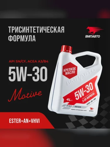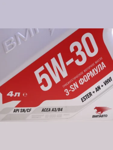 | Наименование | Масло моторное ВМП-АВТО 3-SN A3B4 5W30 синт. 4л |
