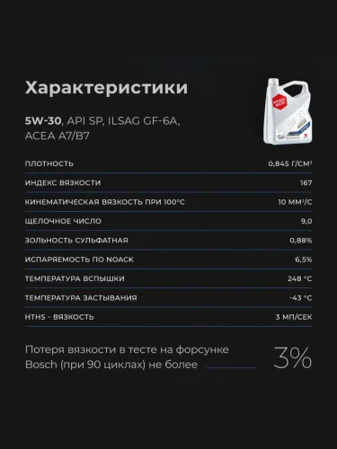 | Наименование | Масло моторное ВМП-АВТО Modern A7B7GF-6A 5W30 синт. 4л |