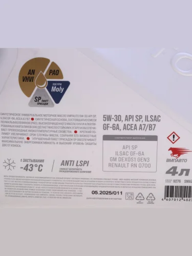 Масло моторное ВМП-АВТО Modern A7B7GF-6A 5W30 синт. 4л