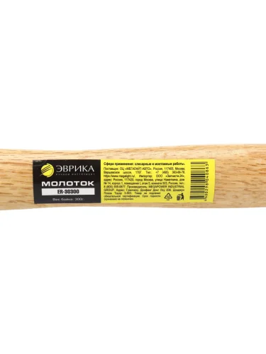 | Наименование | Молоток 0.300кг слесарный деревянная ручка ЭВРИКА |