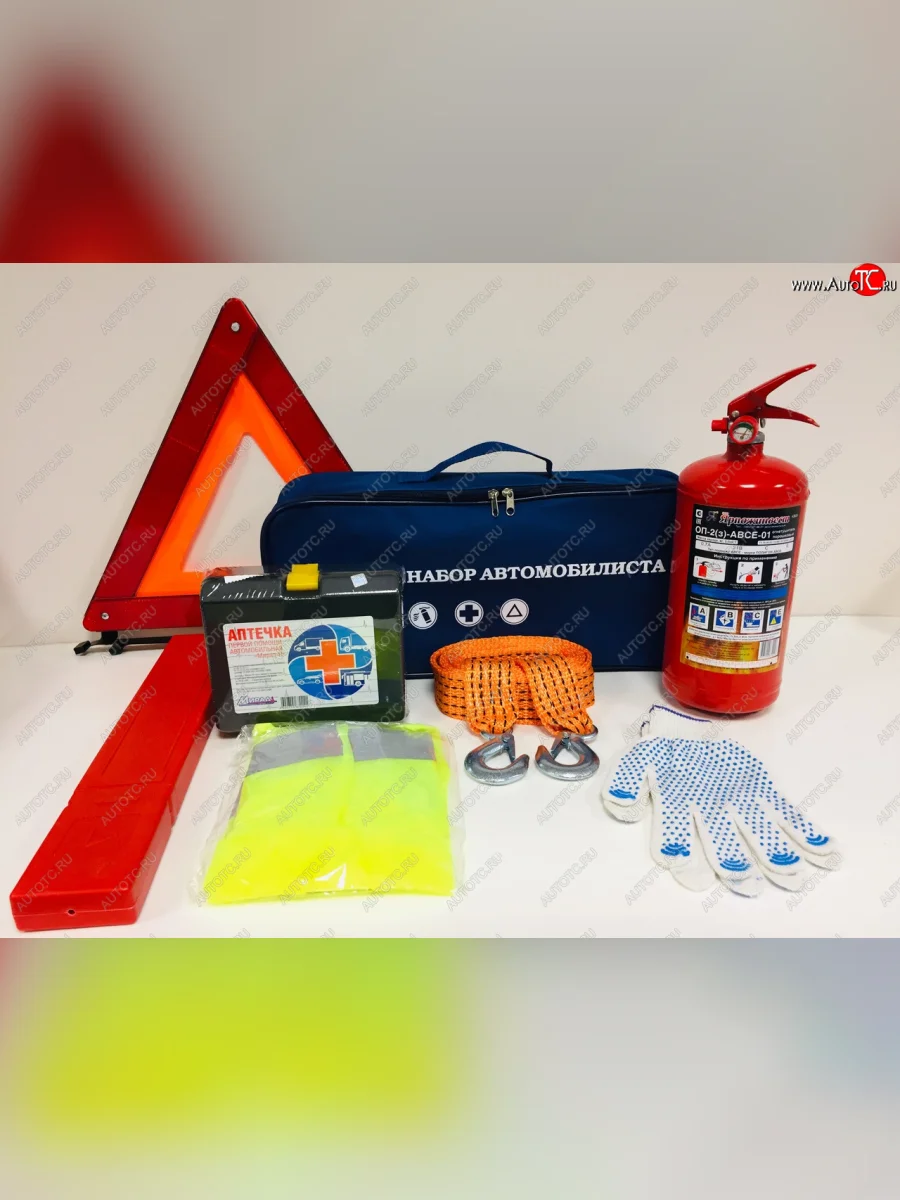 | Наименование | Набор автомобилиста (огнетушитель ОП-2,аптечка,знак,трос 5т,перчатки,жилет) NO NAME евро-1 |