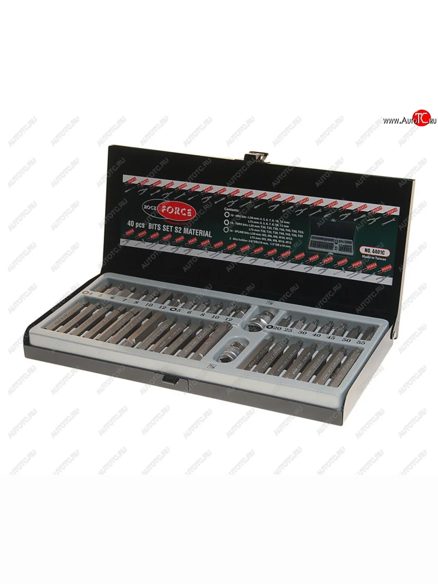 | Наименование | Набор бит 12 38 TORX T20-55 HEX H4-12мм SPLINE M5-12 2 держателя 40 предметов в кейсе ROCKFORCE ROCKFORCE rf-4401c |