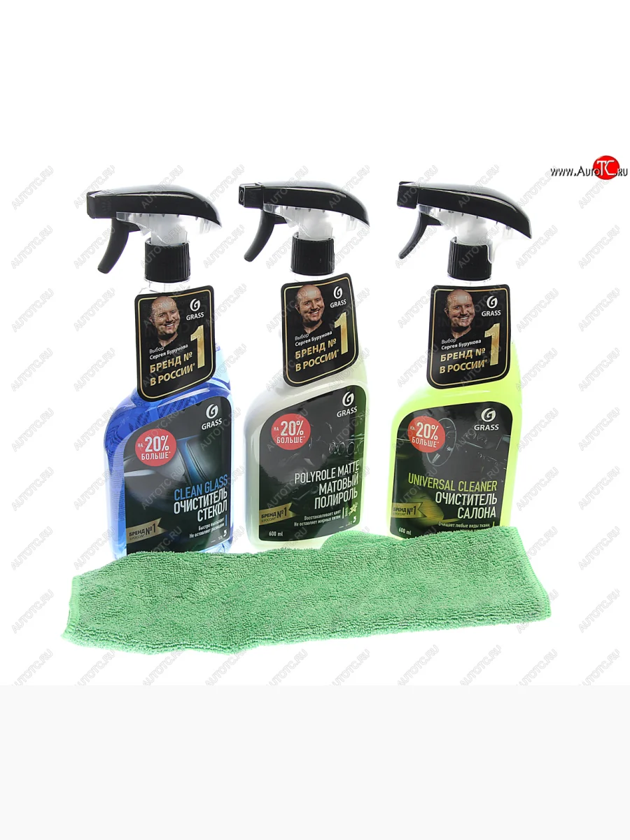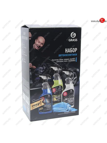 Набор для авто (очиститель салона, полироль пластика, очиститель стекол, микрофибра) GRASS GRASS 800627