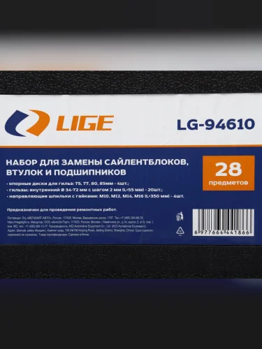 | Наименование | Набор для демонтажамонтажа сайлентблоков, подшипников 28 предметов LIGE |