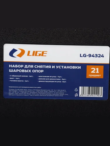 | Наименование | Набор для демонтажамонтажа шаровых опор 21 предмет в кейсе LIGE |