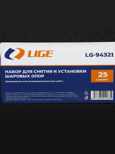 | Наименование | Набор для демонтажамонтажа шаровых опор 25 предметов в кейсе LIGE |
