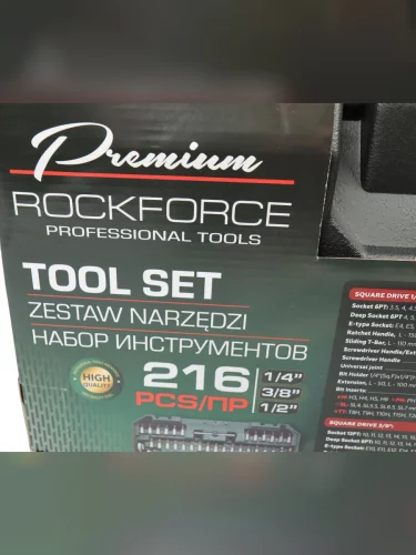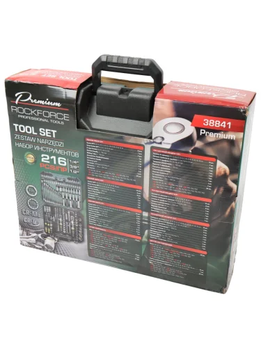 Набор инструмента 12,14,38 216 предметов слесарно-монтажный 6-ти гран. ROCKFORCE ROCKFORCE rf-38841-premium