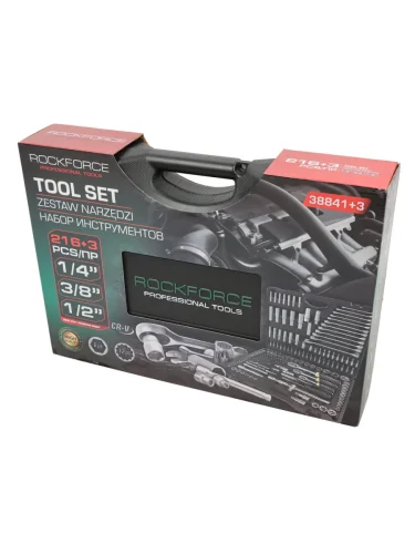 Набор инструментов 216 предметов слесарно-монтажный 12,14,38 6-ти гран. (доп 3 пред) ROCKFORCE ROCKFORCE rf-38841+3