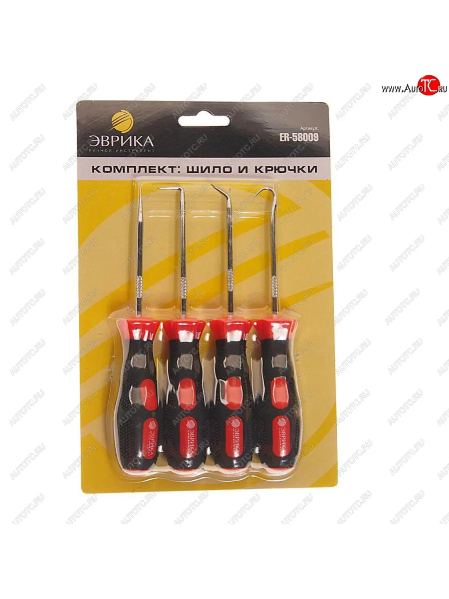 Набор инструментов 4 предмета шило, крючки (изогнутые 45°, 90°) ЭВРИКА ЭВРИКА er-58009