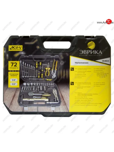 Набор инструментов 72 предмета слесарно-монтажный 14,12 6-ти гран. ЭВРИКА ЭВРИКА er-80072