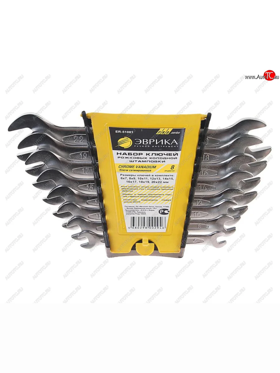 | Наименование | Набор ключей рожковых 6-22мм 8 предметов в холдере CrV Pro ЭВРИКА ЭВРИКА er-51081 |