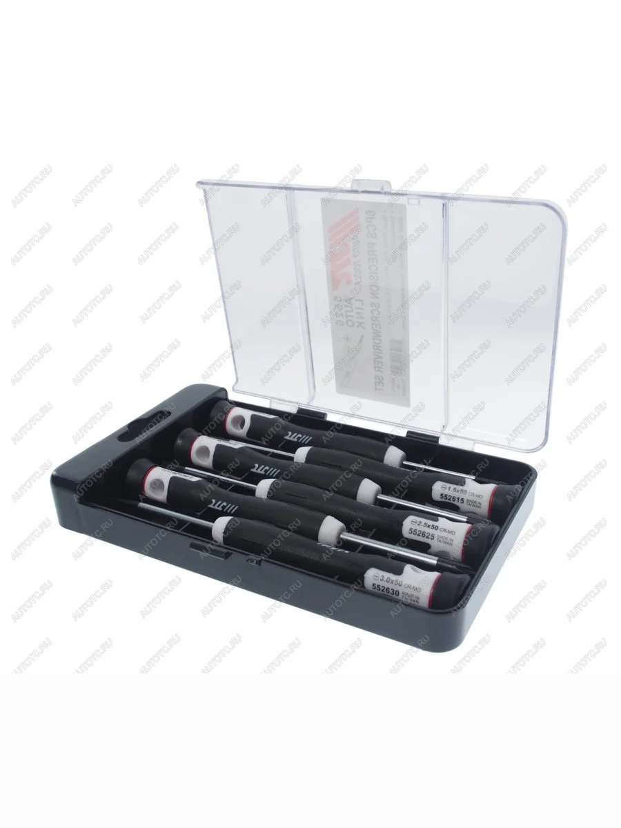 | Наименование | Набор отверток прецизионных PH0001 SL1.52.53 L=150мм 6 предметов JTC |
