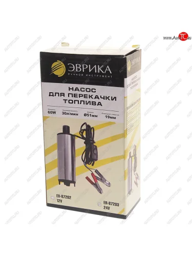 | Наименование | Насос для перекачки топлива 24V 30лмин. d=51мм 19мм 60W ЭВРИКА ЭВРИКА er-87203 |