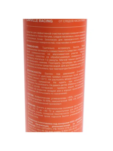 | Наименование | Очиститель битума и следов насекомых 400мл CARVILLE RACING |