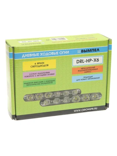 | Наименование | Огни ходовые дневного света 12V комплект ВЫМПЕЛ ОРИОН drl-hp-x6 |