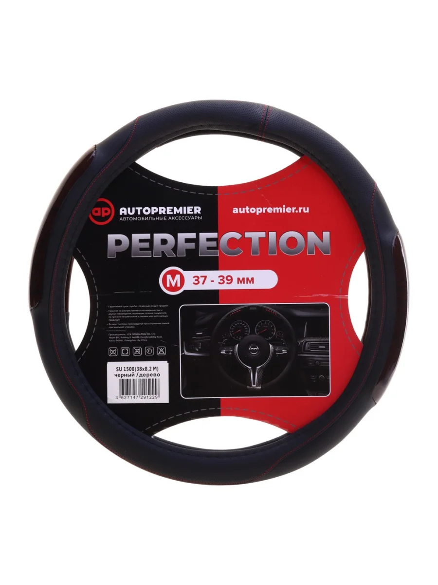 | Наименование | Оплетка руля (M) 37-39см черная дерево экокожа PREMIER |
