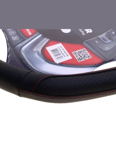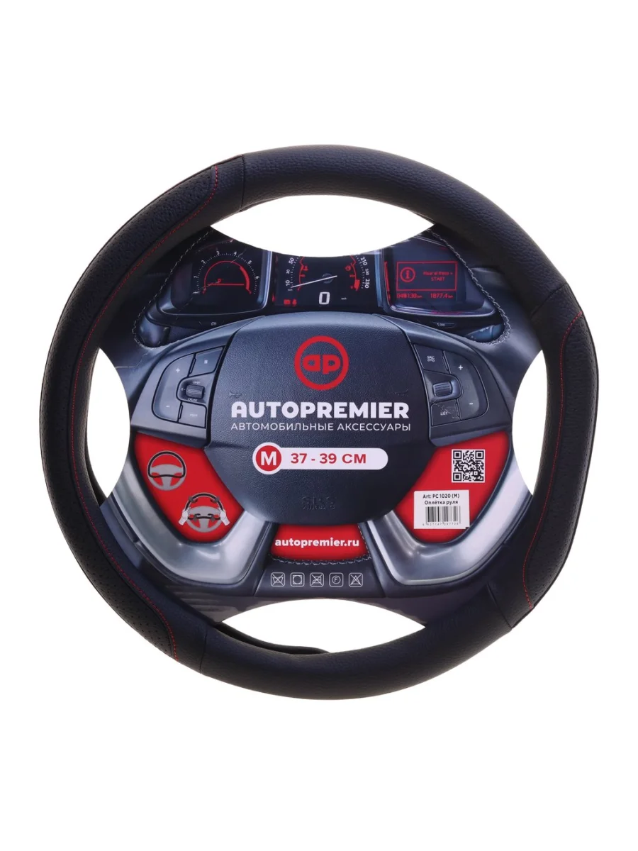 | Наименование | Оплетка руля (M) 37-39см черно-красная со скошенным низом PREMIER |