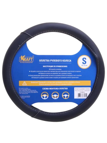 | Наименование | Оплетка руля (S) 35-37см черная экокожа KRAFT |