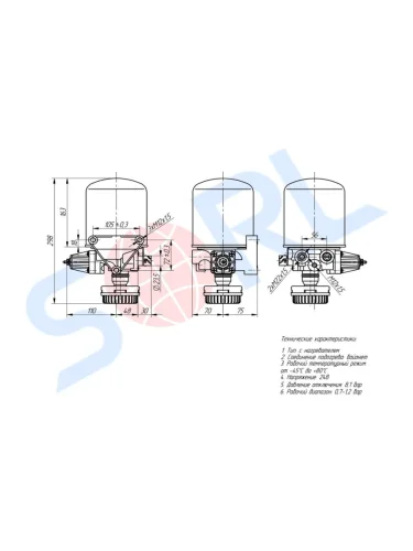 Осушитель воздуха МАЗ КАМАЗ ПАЗ(АВРОРА) ЛИАЗ (24V 3 выхода) SORL SORL 35110033340