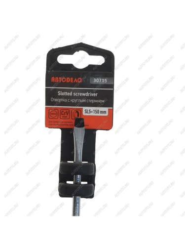 | Наименование | Отвертка шлицевая SL 5.0х150мм (сталь CR-V) АВТОДЕЛО |