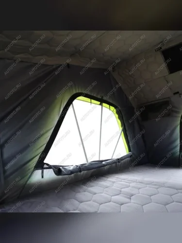 Жесткий пол палатки создает прочную конструкцию в транспортном состоянии. Панели сделаны таким образом, что создают крайне небольшое сопротивление потоку воздуха при движении автомобиля и, как следствие, отсутствие шума.