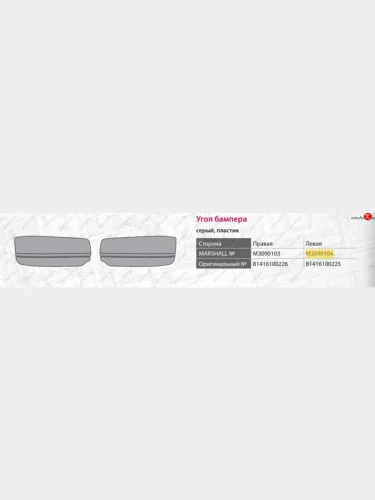| Наименование | Панель MAN TGA LX угловая бампера левая нижняя MARSHALL MARSHALL m3090104 |