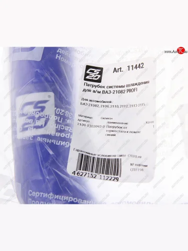 | Наименование | Патрубок ВАЗ-21082 насоса водяного и термостата силикон CS-20 CS-20 11442 |