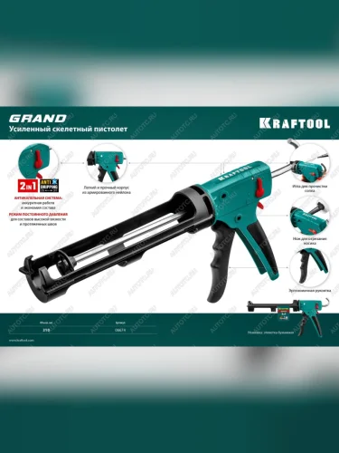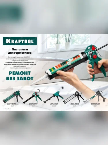 | Наименование | Пистолет для герметика скелетный 310мл антикапельная система KRAFTOOL KRAFTOOL 06674 |