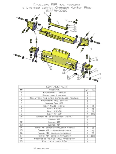 | Наименование | Площадка РИФ под лебёдку в штатный бампер Changan Hunter Plus brand: РИФ |