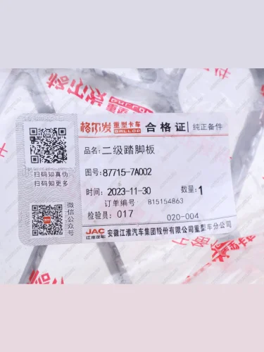 | Наименование | Подножка JAC N350 верхняя (ступенька) OE JAC 87715-7a002 |