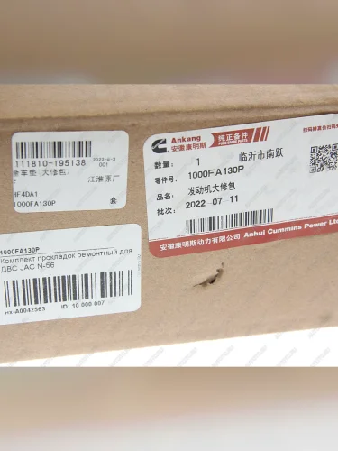 | Наименование | Прокладка двигателя JAC N56 комплект ремонтный OE JAC 1000fa130p |