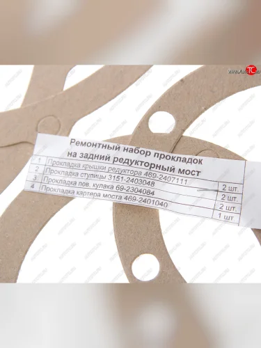 | Наименование | Прокладка УАЗ-469 редукторного моста комплект NO NAME 469-2400 |