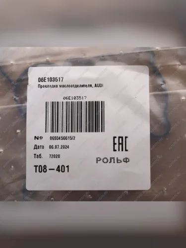 | Наименование | Прокладка VW Passat (05-10) маслоотделителя OE VAG 06e103517 |