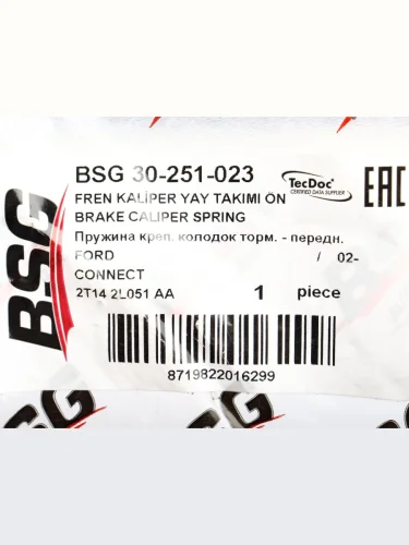 | Наименование | Пружина FORD Transit колодок тормозных передних BSG BSG bsg30251023 |