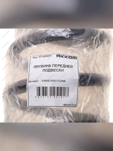| Наименование | Пружина УАЗ-3160 Хантер Патриот Профи подвески передней АККОМ АККОМ 316000-2902712-00а |