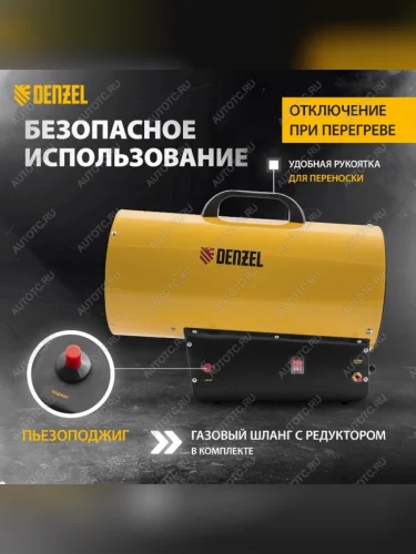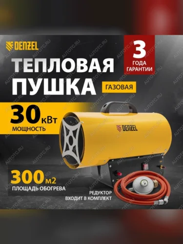 | Наименование | Пушка тепловая 30кВт 900куб.мч газовая DENZEL DENZEL 96479 |