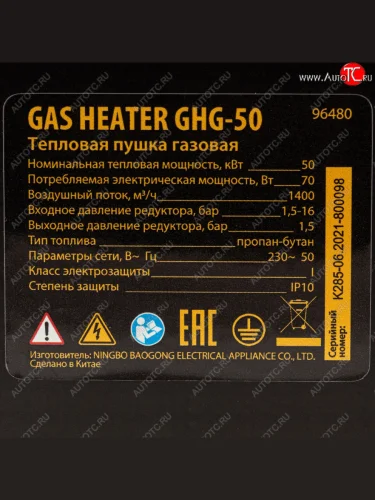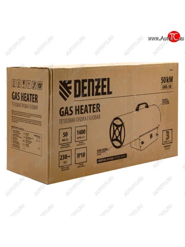 | Наименование | Пушка тепловая 50кВт 1400куб.мч газовая DENZEL DENZEL 96480 |