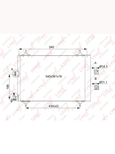 Радиатор кондиционера PEUGEOT Partner (96-) CITROEN Berlingo (96-) LYNX LYNX rc0181