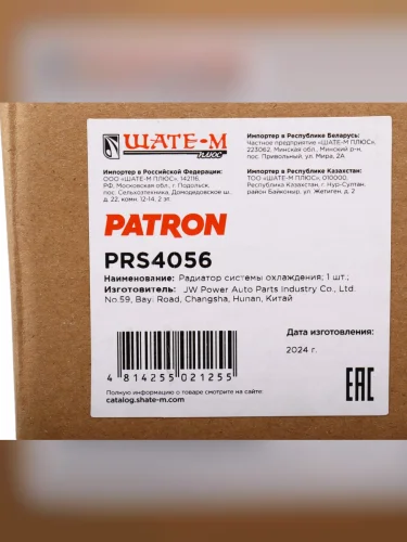 | Наименование | Радиатор PEUGEOT 206 CITROEN C2 охлаждения двигателя PATRON PATRON prs4056 |