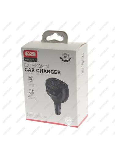 | Наименование | Разветвитель прикуривателя 2-х гнездовой 12V 2USB черный XO XO cc41 black |