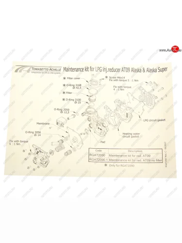 | Наименование | Ремкомплект редуктора Аляска ВПРЫСК TOMASSETO TOMASETTO гбо 000415 |