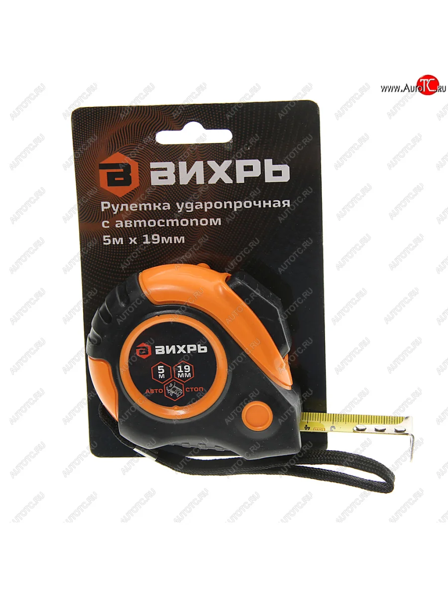 Рулетка 5м 19мм обрезиненный корпус, автоблокировка ВИХРЬ ВИХРЬ 731115
