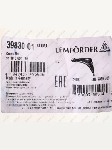 | Наименование | Рычаг подвески BMW 5 (G30) передней нижний правый LEMFORDER LEMFORDER 3983001 |