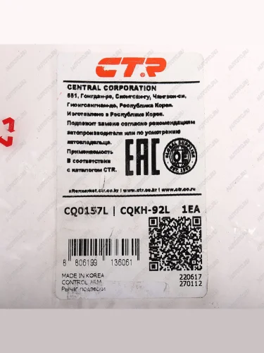 | Наименование | Рычаг подвески HYUNDAI Sonata (10-) передней нижний левый CTR CTR cq0157l |