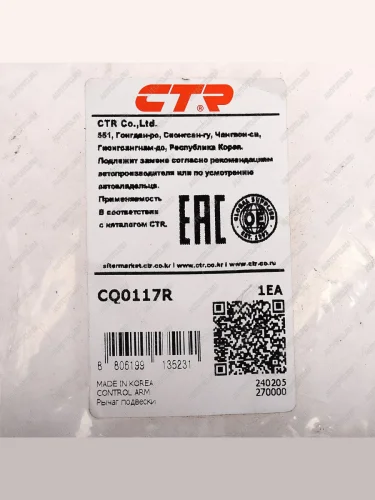 | Наименование | Рычаг подвески HYUNDAI Starex H-1 (06-) передней верхний правый CTR CTR cq0117r |