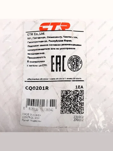 | Наименование | Рычаг подвески KIA Carnival (06-) задней поперечный правый CTR CTR cq0201r |