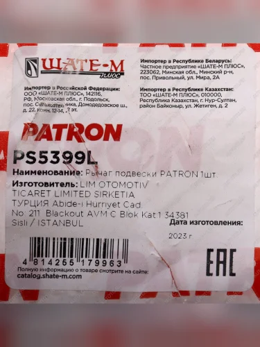 | Наименование | Рычаг подвески VOLVO XC70 (08-07) передний левый PATRON PATRON ps5399l |