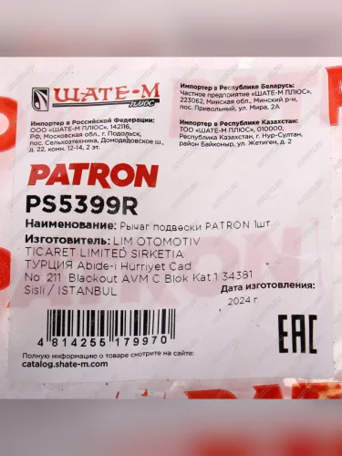 | Наименование | Рычаг подвески VOLVO XC70 (08-07) передний правый PATRON PATRON ps5399r |