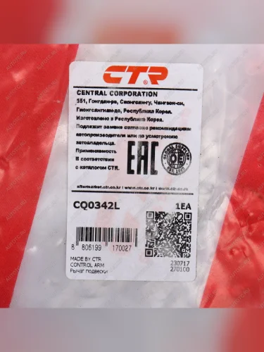 | Наименование | Рычаг подвески VW Polo (01-09) SKODA Fabia (07-) передней левый CTR CTR cq0342l |