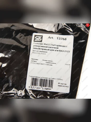 | Наименование | Сальник ВАЗ-2123 привода комплект 2шт. CS-20 CS-20 13768 |